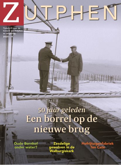 Een vredig beeld vol symboliek: twee mannen die elkaar op een brug een hand geven. Dat is te zien op de omslag van het vierde nummer in 2025 van ZUTPHEN, het tijdschrift van de Historische Vereniging Zutphen. De brug was er nog niet echt. Er was speciaal even een plank gelegd voor de foto. Dat was in 1975. Binnen de geschiedenis van Zutphen lijkt vijftig jaar geleden ongeveer gisteren. Een aantal van ons waren er nog bij. Iets langer geleden speelt een verhaal over rijtuigen, jazeker, met paarden ervoor.